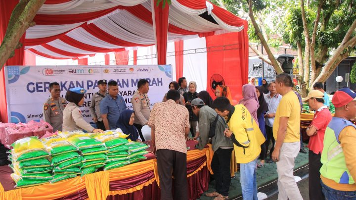 OKU Timur, PS – Harga sembako dibuat amblas di Gerakan Pangan Murah (GPM) yang digelar Polres OKU Timur, Polda Sumatera Selatan, Kamis (14/8/2025).