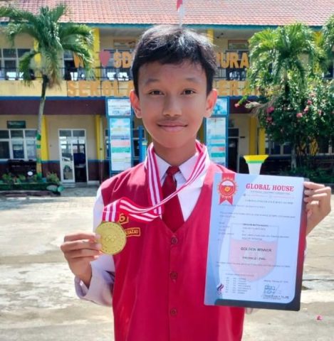 Baim sapaan anak berbakat ini, diketahui mencatatkan namanya dengan meraih medali emas (Golden Winner) dari kompetisi olimpiade yang digelar Global House National English and Science Olympic (NESO) 2024.