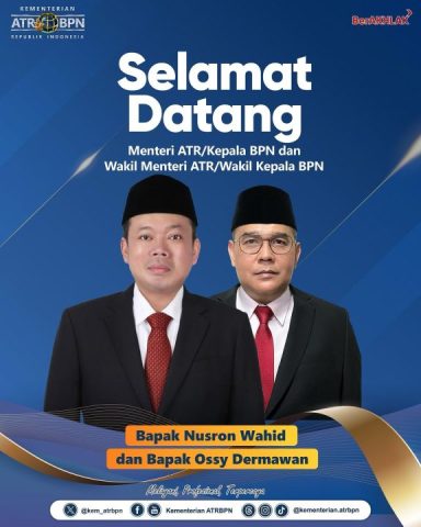 Jakarta – Segenap jajaran Kementerian ATR/BPN mengucapkan selamat bertugas kepada Bapak Nusron Wahid dan Bapak Ossy Dermawan sebagai Menteri ATR/Kepala BPN dan Wakil Menteri ATR/Wakil Kepala BPN di Kabinet Merah Putih.