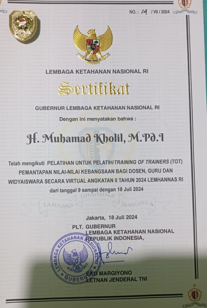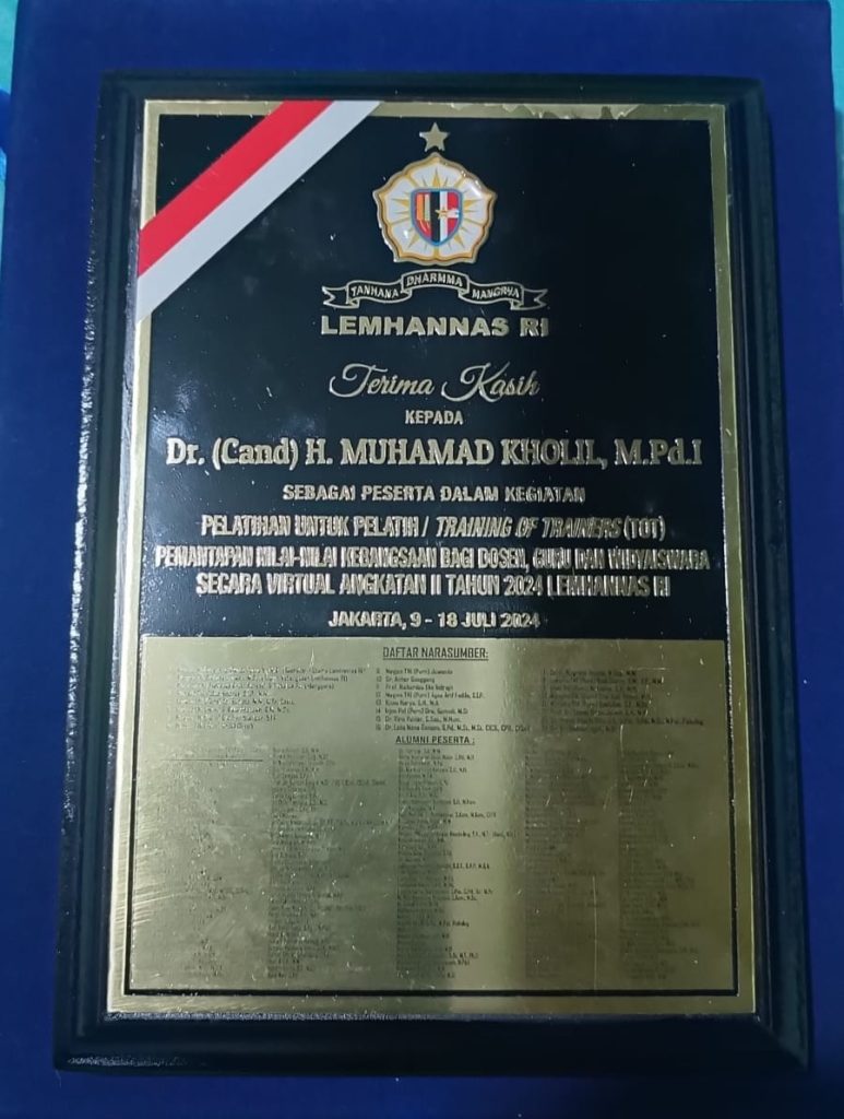 Selain itu, beliau juga berhasil lulus dalam Pelatihan untuk Pelatih Training of Trainers (TOT) Pemantapan Nilai-Nilai Kebangsaan bagi dosen, guru, dan widyaiswara Angkatan II Tahun 2024.