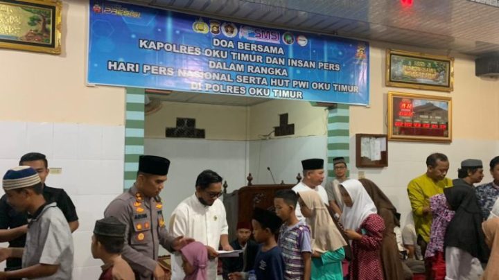 OKU Timur, poros.sumsel.today – Dalam rangka memperingati Hari Pers Nasional dan Hut PWI ke 77, Polres OKU Timur menggelar doa bersama insan pers yang bertugas di Bumi Sebiduk Sehaluan, bertempat di Mushola Al-Amin Mapolres OKU Timur, Selasa (21/02/2024) malam.