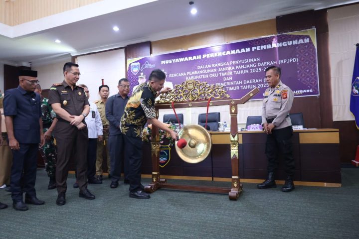 Dibuka langsung oleh Bupati OKU Timur Ir. H. Lanosin, M.T. dengan ditandai pemukulan gong, kegiatan ini terselenggara dalam rangka Penyusunan Rencana Pembangunan Jangka Panjang Daerah (RPJPD) Kabupaten OKU Timur Tahun 2025-2045 dan Rencana Kerja Pemerintah Daerah (RKPD) Kabupaten OKU Timur Tahun 2025.