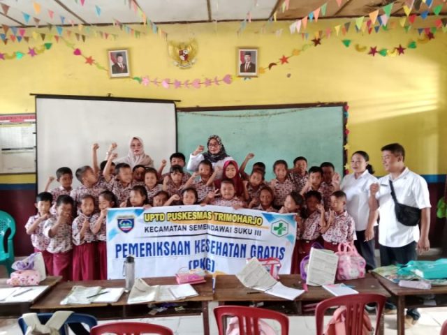 OKU Timur, PS – UPTD Puskesmas Trimoharjo, Kecamatan Semendawai Suku III, menggelar kegiatan Cek Kesehatan Gratis (CKG) di sekolah-sekolah sepanjang Juli 2025. Program ini merupakan bagian dari Pemeriksaan Kesehatan Gratis (PKG) nasional yang bertujuan mendeteksi dini masalah kesehatan anak usia sekolah sekaligus meningkatkan kesadaran pentingnya pola hidup sehat.